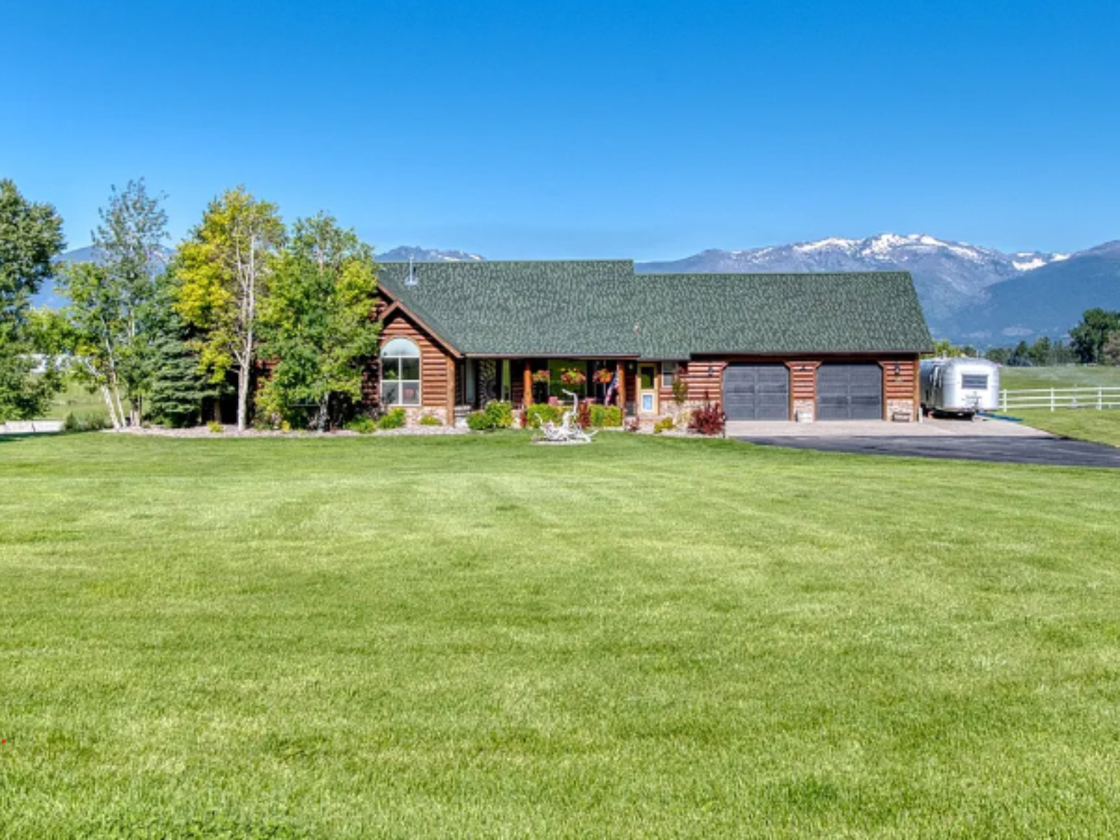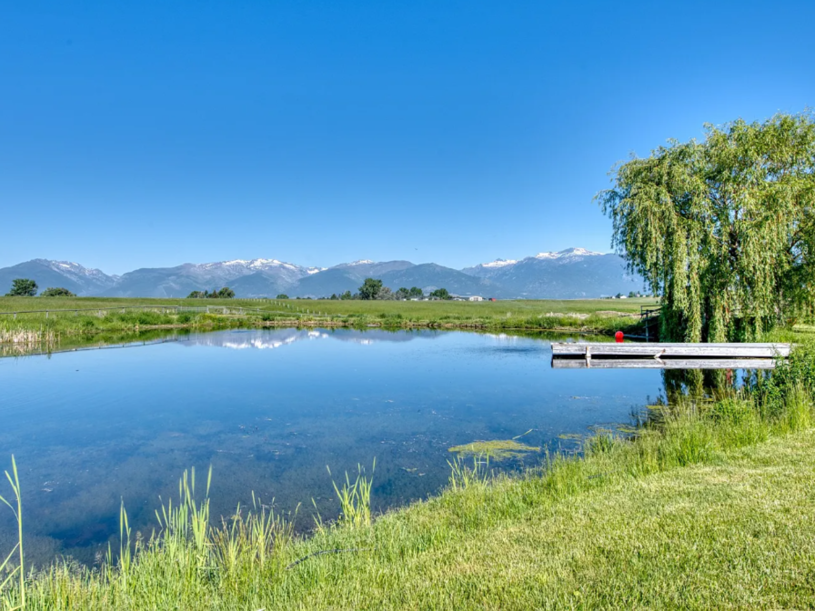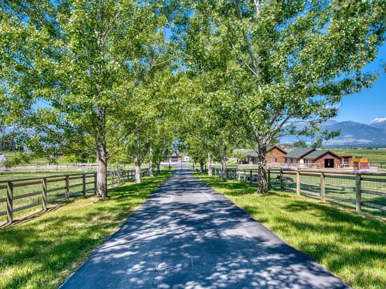 Set on 10 private acres with wide-open mountain views, this Montana retreat blends luxury living with ranch-style amenities. A tree-lined ¼-mile long asphalt driveway leads you past two horse corrals and into a peaceful, secluded landscape anchored by a natural pond, barn, and expansive outdoor space.